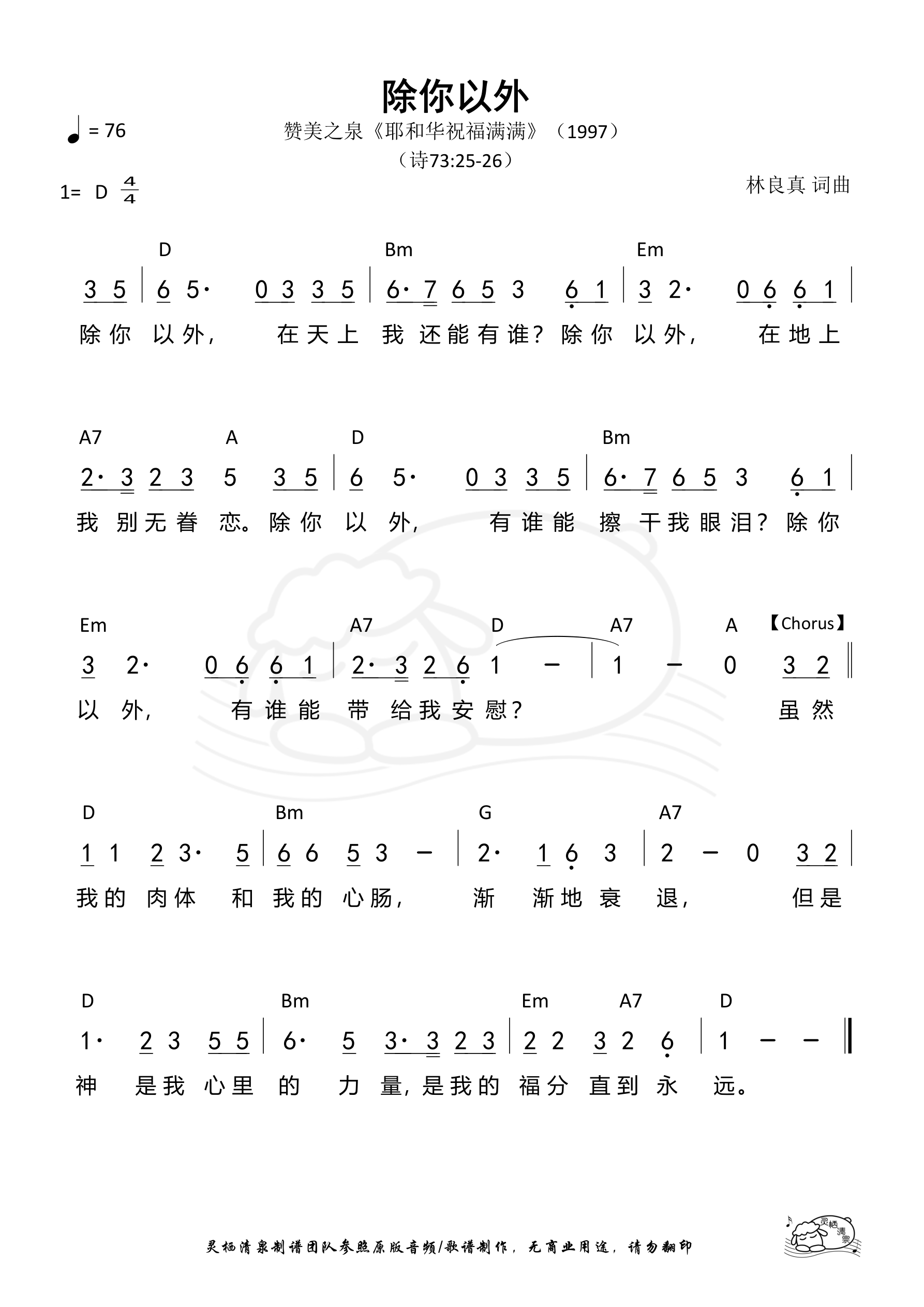 词曲:林良真 歌手:赞美之泉 专辑:耶和华祝福满满 年份:1997