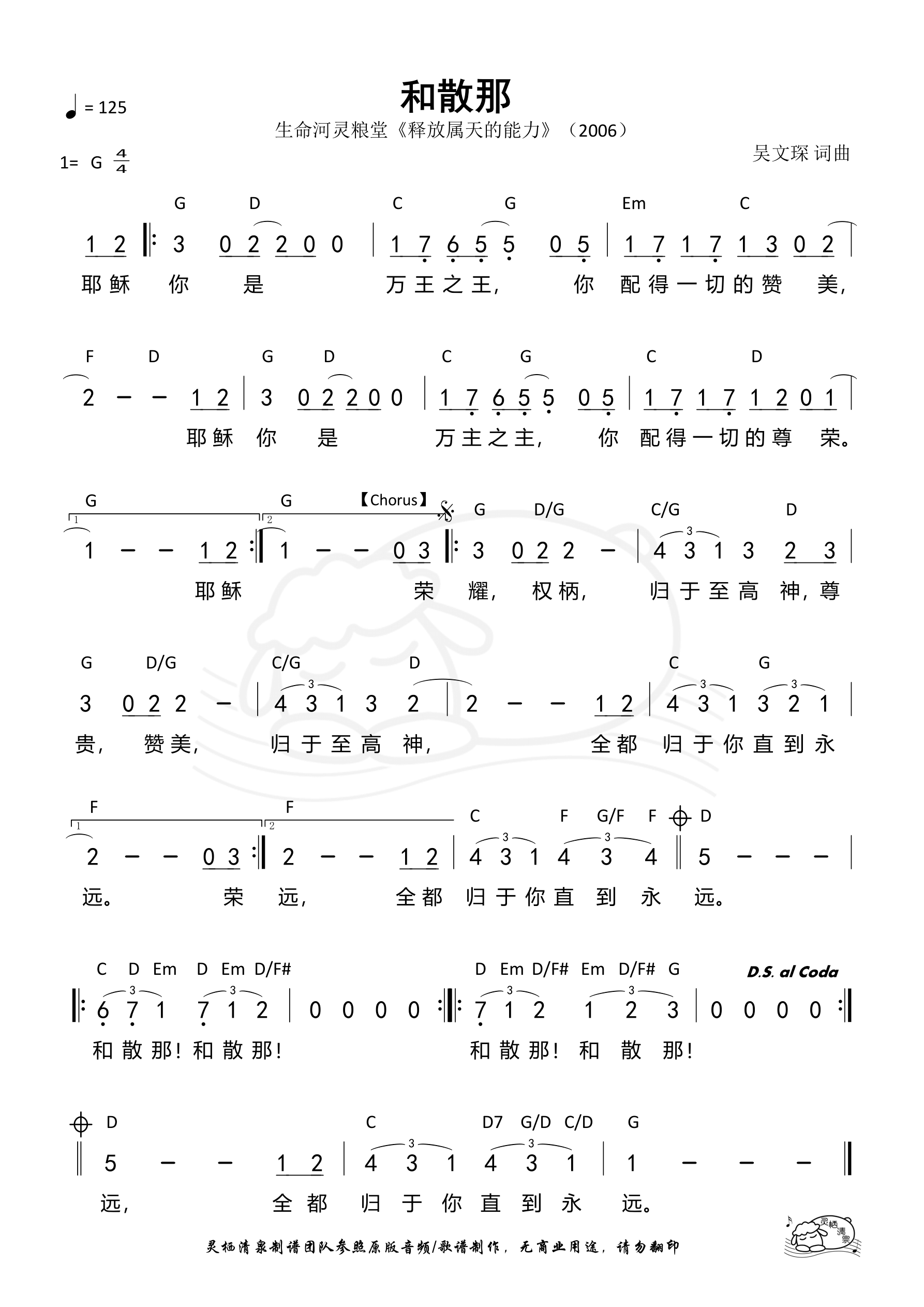 词曲:吴文琛 歌手:生命河灵粮堂 专辑:释放属天的能力 年份:2006