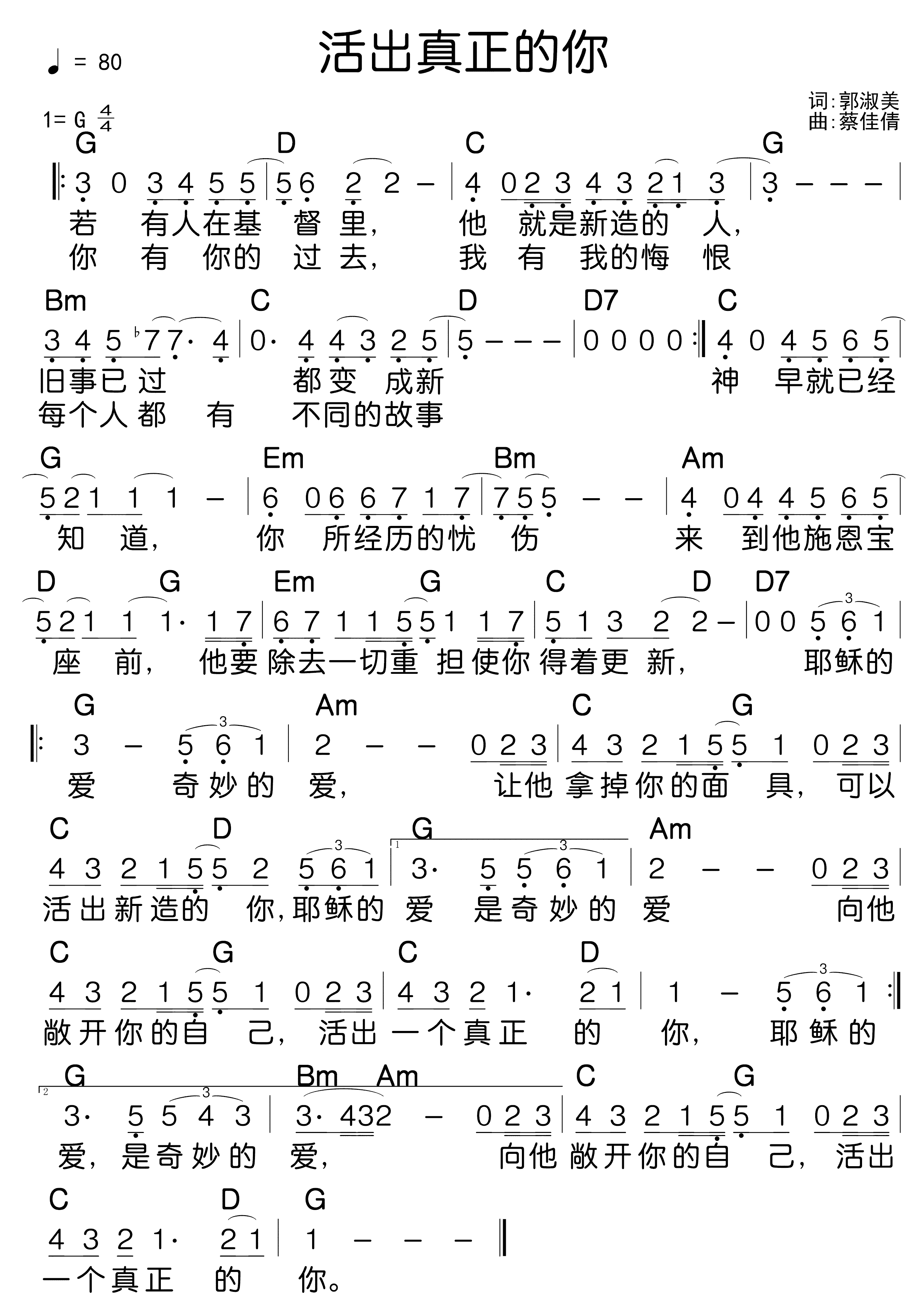 作词:郭淑美 作曲:蔡佳倩 歌手:有情天音乐 专辑:活出真正的你