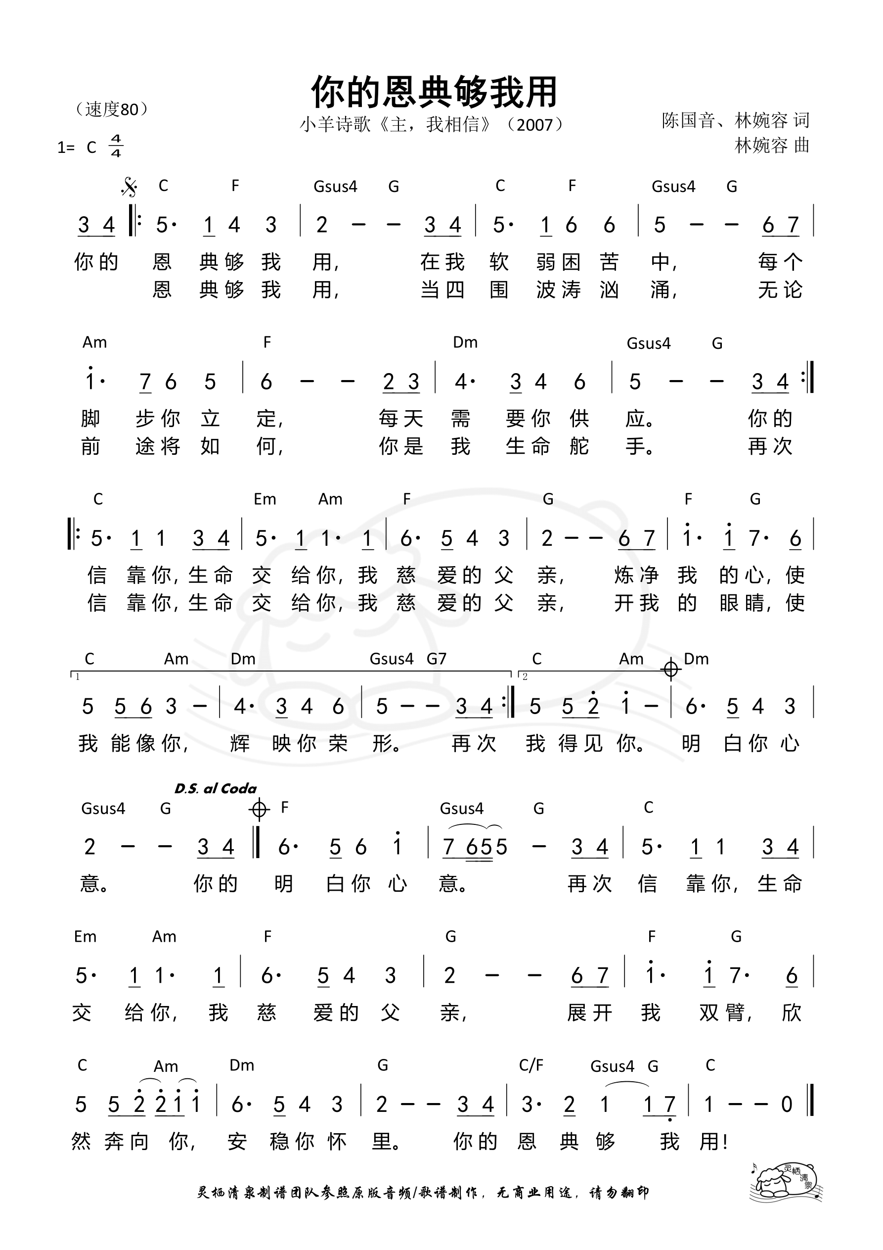 词曲:陈国音、林婉容 歌手:小羊诗歌 专辑:主,我相信 发行:2007