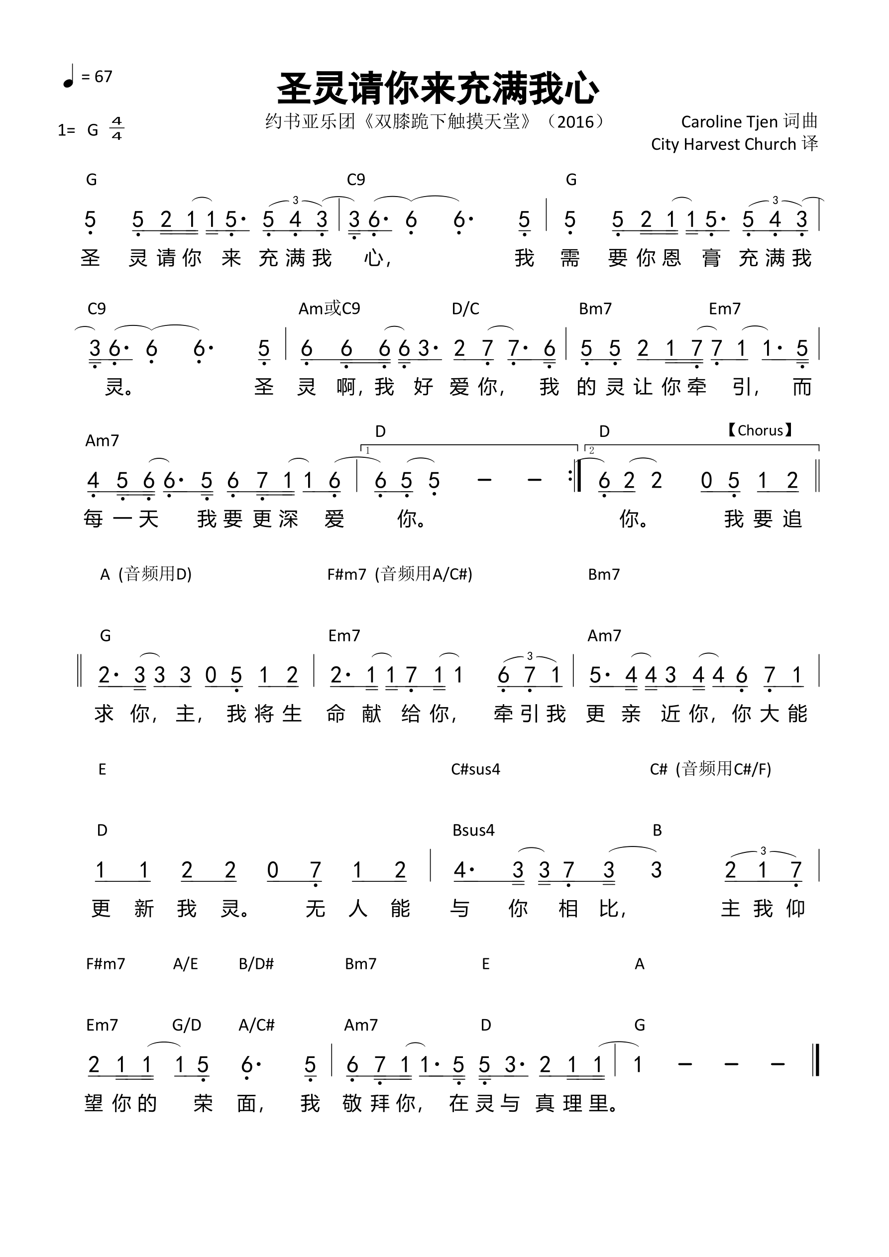 词曲:Caroline Tjen 歌手:约书亚乐团 专辑:双膝跪下触摸天堂 发行:2016 Verse 圣灵请你来充满我心 我需要你恩膏充满我灵 圣灵啊 我好爱你 我的灵让你牵引 而每一天我要更深爱你 Chorus 我要追求你 主 我将生命献给你 牵引我更亲近你 你大能更新我灵 无人能与你相比 主我仰望你的荣面 我敬拜你 在灵与真理里
