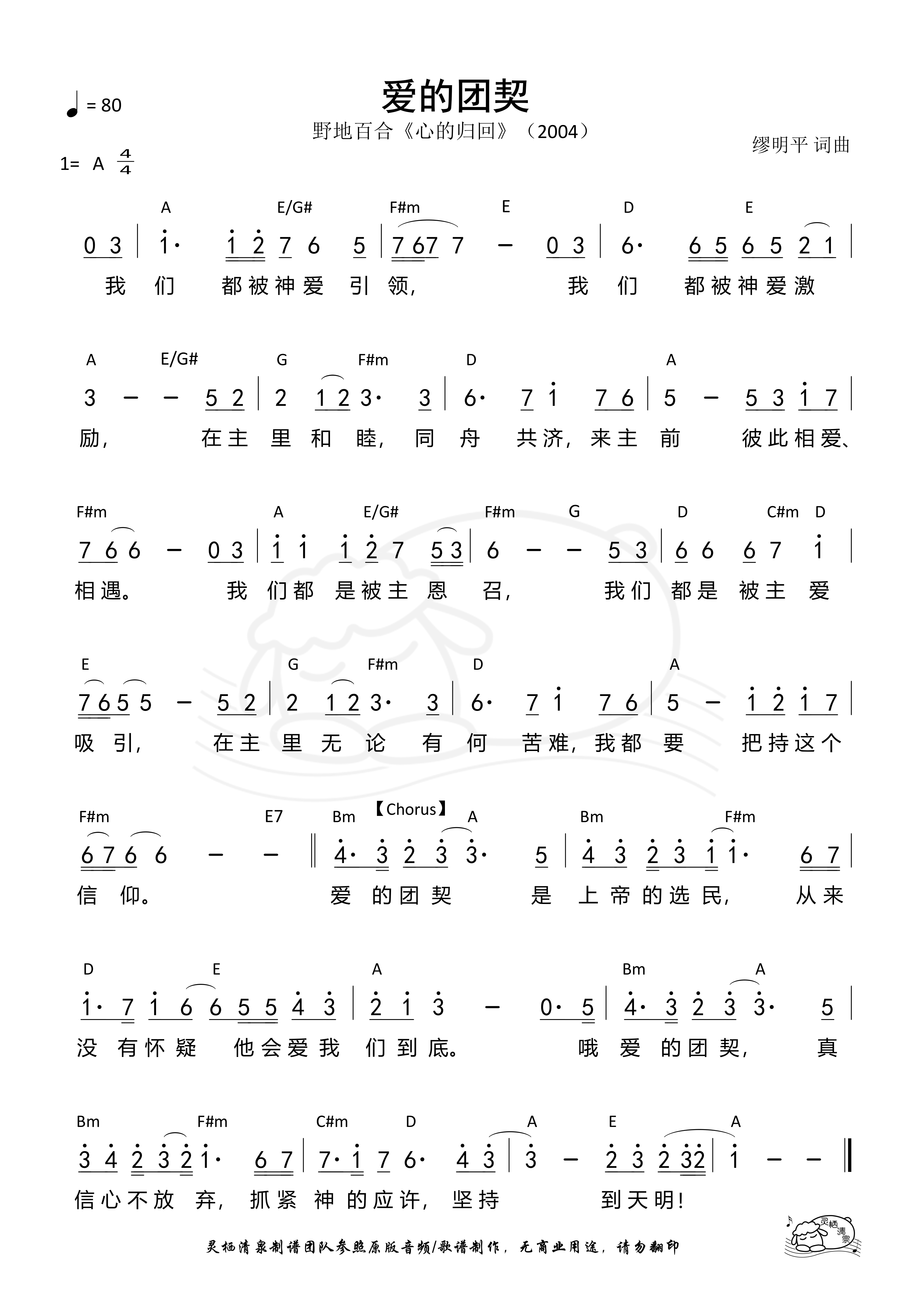 词曲:缪明平 歌手:野地百合 专辑:心的归回 年份:2004