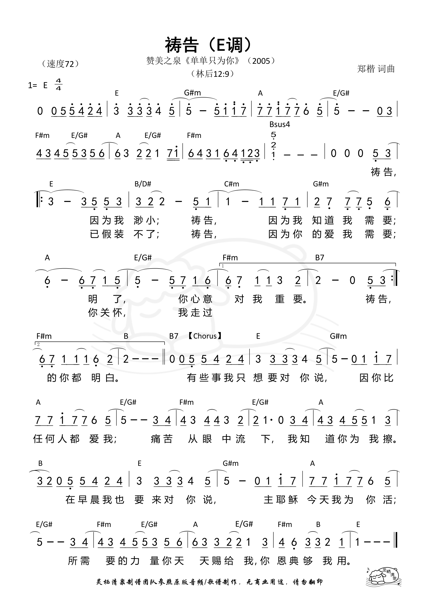 词曲:郑楷 歌手:赞美之泉 专辑:单单只为你 年份:2005