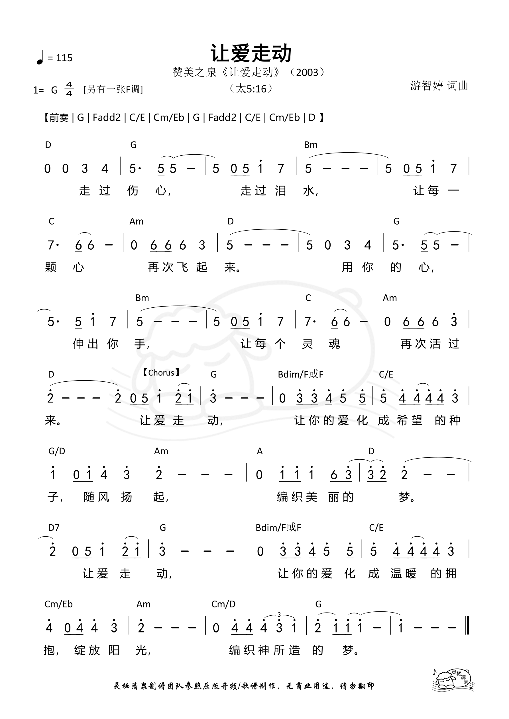 词曲:游智婷 歌手:赞美之泉 专辑:让爱走动 年份:2003
