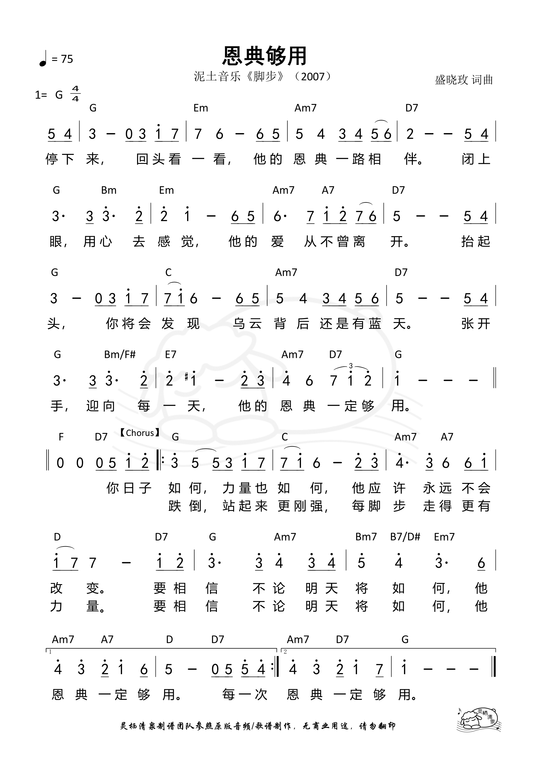 词曲:盛晓玫 歌手:泥土音乐 专辑:脚步 年份:2007