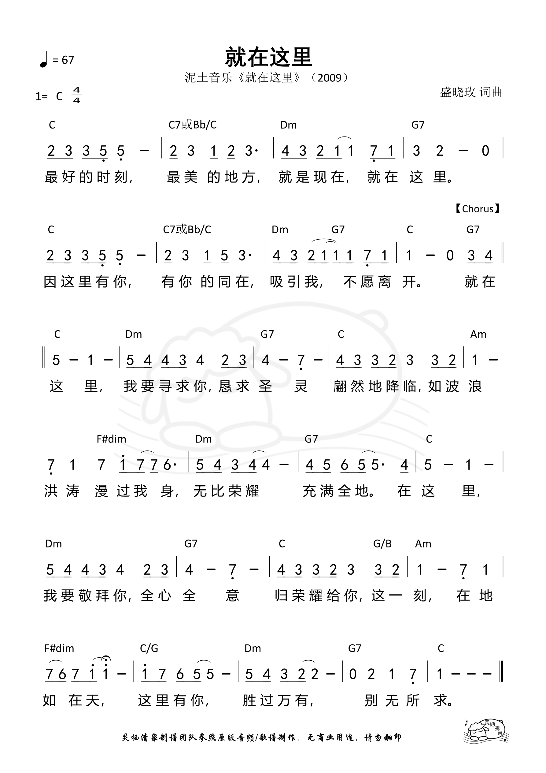 词曲:盛晓玫 歌手:泥土音乐 专辑:就在这里 发行:2009